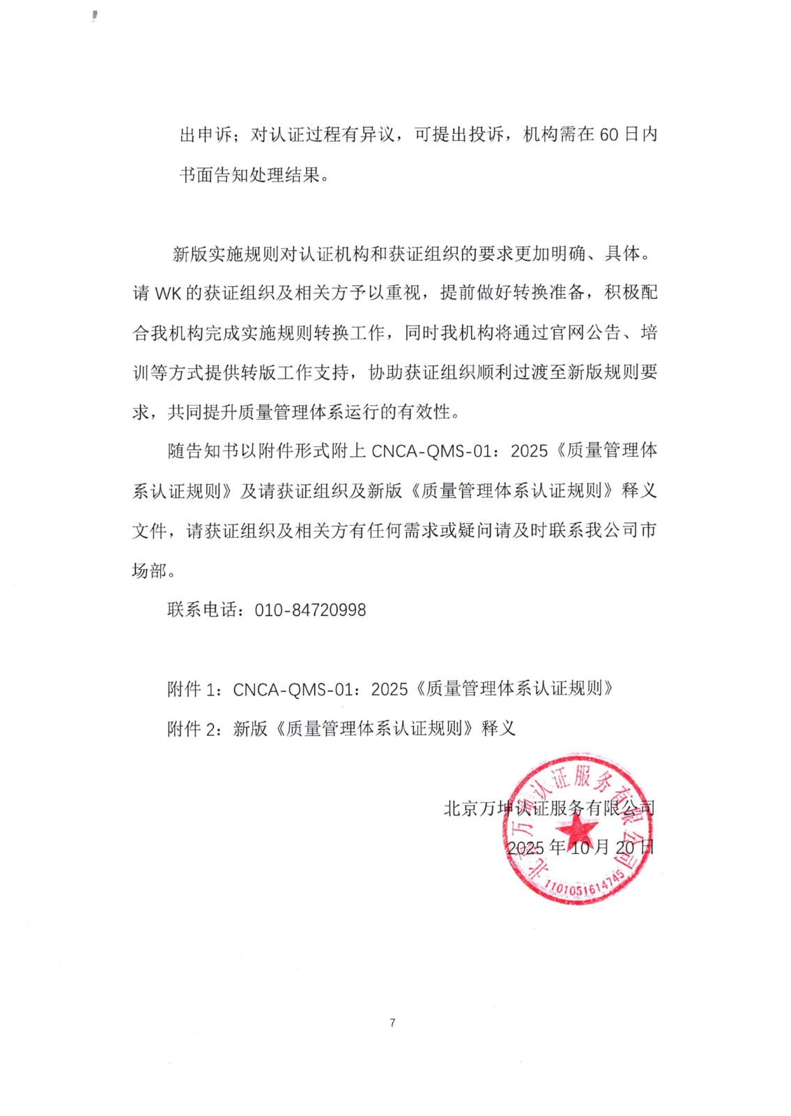 关于“新版《质量管理体系认证规则》”告客户书